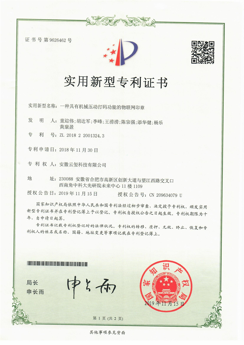 公司原創(chuàng)發(fā)明一體式智能印章技術(shù),引領(lǐng)國(guó)內(nèi)外新一代智能印簽創(chuàng)新變革。獲中日韓多項(xiàng)發(fā)明專利,徹底解決了實(shí)體印章和電子印簽管控的社會(huì)難題,獲國(guó)務(wù)院國(guó)資委全國(guó)央企熠星二等獎(jiǎng)。公司聯(lián)合國(guó)家信息安全產(chǎn)品認(rèn)證中心、公安部三所、信通院、中國(guó)印章協(xié)會(huì)等,主導(dǎo)起草了行業(yè)首個(gè)智能印章安全認(rèn)證標(biāo)準(zhǔn)和智能印章產(chǎn)品標(biāo)準(zhǔn),引領(lǐng)了智能印章行業(yè)發(fā)展。